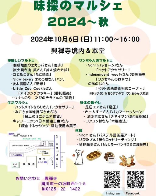 10月6日(日)は、興禅寺味採のマルシェ出店の為、店舗はお休みとなります。さぁ!食欲の秋を楽しみましょう!!